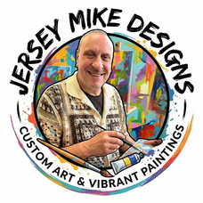 Title: Meadow ImpressionsWhile abstract, this piece evokes the feeling of wind-blown foliage or tall stalks swaying in a sun-drenched field. The heavy, dark blue brush tips ground the composition with deliberate, rhythmic movement, while the vibrant green background keeps the overall energy bright and airy.Scattered circular white accents mimic the look of wildflowers or dandelion clocks caught in a breeze, blending the visible shape of the artist's tools with the organic beauty of the natural world.Artist: Michael J Maione